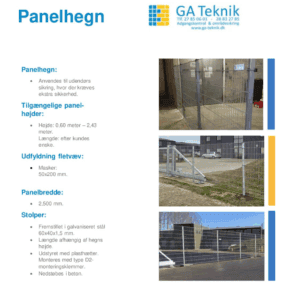 Hos GA Teknik leverer vi panelhegn til virksomheder, der ønsker en holdbar og sikker afgrænsning af deres område. Uanset om det er til industri, erhverv, institutioner eller offentlige anlæg, er vores panelhegn en løsning, der kombinerer funktionalitet, sikkerhed og et professionelt udtryk.